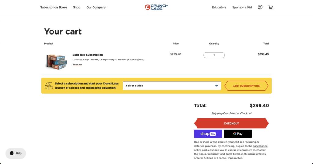 大変申し訳ございません。CrunchLabsを快適にご利用いただけるよう、全力を尽くしております。ご不明な点がございましたら、お電話またはhelp@crunchlabs.comまでメールでお問い合わせください。もし今後のBuild Boxをキャンセルされたい場合は、以下の手順に従ってください。